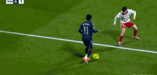第45分钟,打破僵局,欧纳希劲射得分,皇马0-1
