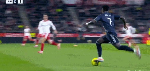 第23分钟,维尼修斯突入禁区左脚射门,皮球偏出球门