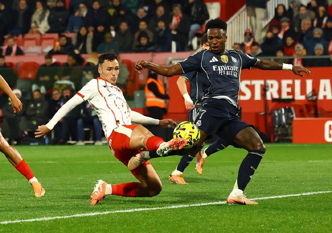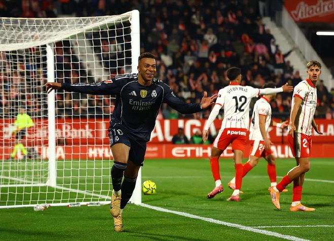 比赛开始后皇马没有意外占据进攻主导权,只是银河战舰上半场10次射门,只有1次命中门框范围内;第9分钟,姆巴佩禁区内过人摆脱回敲,居莱尔弧顶处不停球劲射稍稍高出;第12分钟,赫罗纳后场失误,姆巴佩小角度射门打高;第23分钟,维尼修斯肋部强突禁区左脚低射,皮球还是偏离了球门。第41分钟,姆巴佩门前混战当中机敏捅射破门,但经过VAR回放判定手球在先进球无效;逃过一劫的赫罗纳反而率先打破场上僵局;第45分钟,齐甘科夫右路一记横传轻松打穿防守,欧纳希点球点爆射入网,0:1!