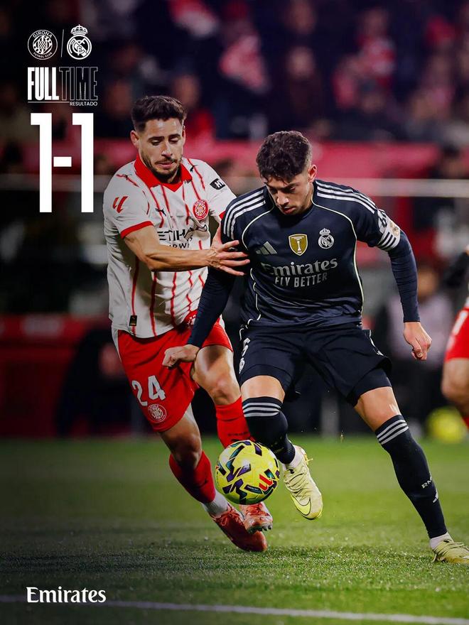 79' 维尼修斯左路内切兜射,皮球稍稍打高。90+4' 姆巴佩禁区兜射远角,皮球擦柱而出。比赛结束,皇家马德里在客场战平吉罗纳,暂列西甲积分榜第二。