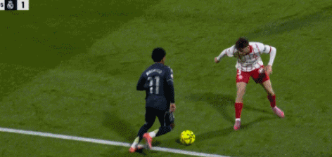 这次点球争议,发生在比赛第80分钟:罗德里戈带球杀入禁区,赫罗纳后卫乔尔-罗卡正面防守。罗德里戈连续假动作晃动、变向,乔尔-罗卡伸出右脚,踢到罗德里戈的右小腿上。罗德里戈倒地,裁判没有判罚。