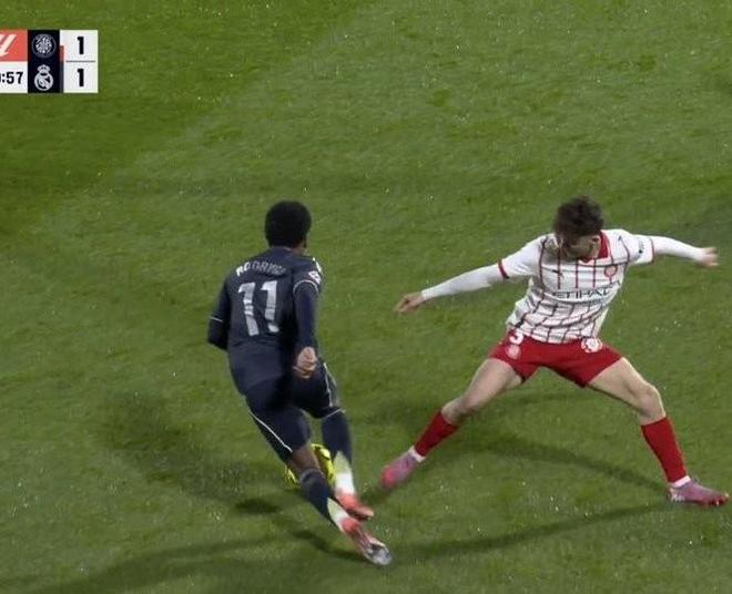 比赛末段比分僵持在1-1时,皇马曾强烈要求判罚点球。当时罗德里戈在禁区内与霍埃尔-罗卡正面对抗,罗卡用右脚踢中了罗德里戈的右腿,导致罗德里戈倒地。倒地瞬间,罗德里戈就示意对方犯规并申请点球。终场哨响后,罗德里戈、米利唐、贝林厄姆等球员直接围向裁判,当面表达不满。值得一提的是,吕迪格此前在国王杯决赛中就与布尔戈斯发生过冲突,还因此被停赛六场,此次他情绪尤为激动,险些引发更大的冲突,幸好被卡雷拉斯拉住。