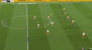 65’莱万做球,奥尔莫劲射打入远角,巴萨2比1反超。
