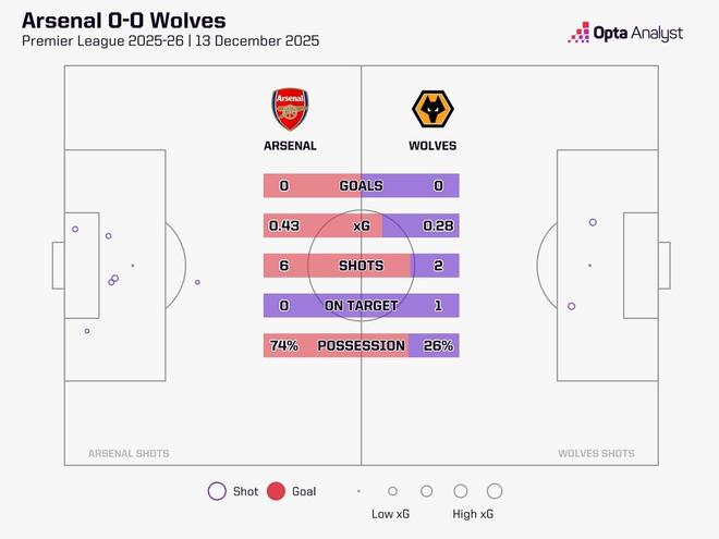 在这场看似实力差距巨大的比赛中,阿森纳上半场6次射门却无一命中目标,预期进球数仅为0.43,根据Opta的统计,这同时也是枪手本赛季至今在