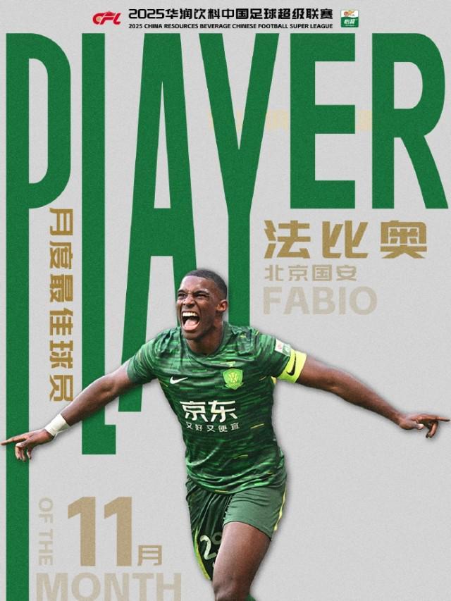 2场贡献6球1助攻+夺得金靴,法比奥当选中超11月最佳球员